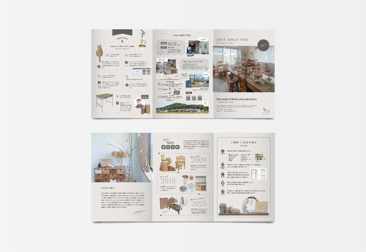 浜松にあるオーダーメイド家具屋「onpu」さんの広告物全体をご担当させていただきました。 2023年から、お店の移転をきっかけにロゴから全てデザインを一転したいという希望のもと、制作に携わらせていただきました。 onpuさんは、家具の製作を主にされるご主人と、お店のスタイリング・接客を主にされる奥様、ご夫婦二人三脚で10年以上も経営されてきました。 お二人のこだわりや想いを打ち合わせを重ね、少しずつ形にしていき私自身も大変楽しくデザインをさせていただいた思い入れの深いお仕事でした。 お店のコンセプトである「お客様の想いをカタチに」は、既製品では決して叶えられないお客様の心の隙間をそっと埋めるものでした。「お気に入りのマグカップがすっぽりとハマる棚」、「二匹の足の長さの違う猫たちが2人とも楽しい遊び場」「足が悪い人でも楽々を座れる足掛けのついた椅子」など、お店にはにはお二人の愛情に溢れた家具がたくさんありました。 オーダーメイドでご注文する際も、お客様から出る何気ない言葉からアイディアを出し、世界でただ一つ、オンリーワンな家具を製作しています。 近年、古民家ブームが来ていることから、お店の商品もレトロ調な家具のお求めが多くなっているそうで、お店のテイストを時代に合わせてガラッと変えるという新たな挑戦の期に立ち会わせていただきました。onpuさんの「時代に合わせた家具づくり」は、大企業では創造できない世界観とあたたかさをいつの時代も提供してくださいます。 最初は、ロゴ制作から始まり お店の看板、タグ、ショップカードと様々な媒体を手掛けさせていただました。onpuさんの作る家具のぬくもりをデザインを通じてお伝えしていきます。