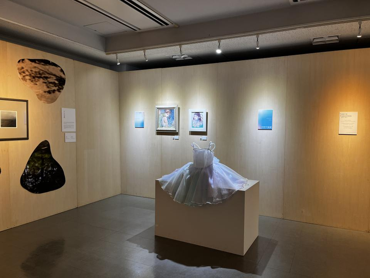 2年必修展示基礎の授業でグループに分かれて展示空間を作りました🖼️私たちの班は川村千紘さんの作品を展示させていただきました。学科が所蔵する作品を2つと自分たちで作る作品1つの計3つで展示空間を構成するという課題でした。私は主にパネル・キャプション・展開図を制作する担当でした。3つ目の作品であるドレスは班の子がリメイクして川村さんの作品に合うものを作ってくれました👗