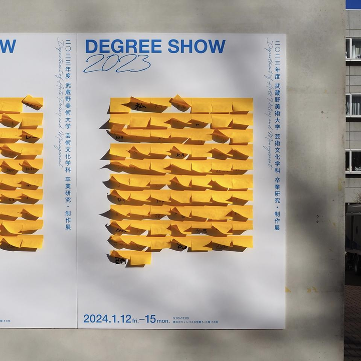 4年生の卒業研究・制作展のサポートをするプロジェクトに参加していました🟨1年生7人と専任教員2人で構成されており、私は制作・広報班でした。パンフレットやステッカーを作ったりSNSの運用をしたりしました。とても大変でしたが色々な力が身についたので参加して本当によかったです!報告書のビジュアルも自分が制作しました✨