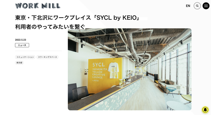 WORK MILL様にインタビュー掲載を頂きました。 『東京・下北沢にワークプレイス「SYCL by KEIO」 利用者のやってみたいを繋ぐ』