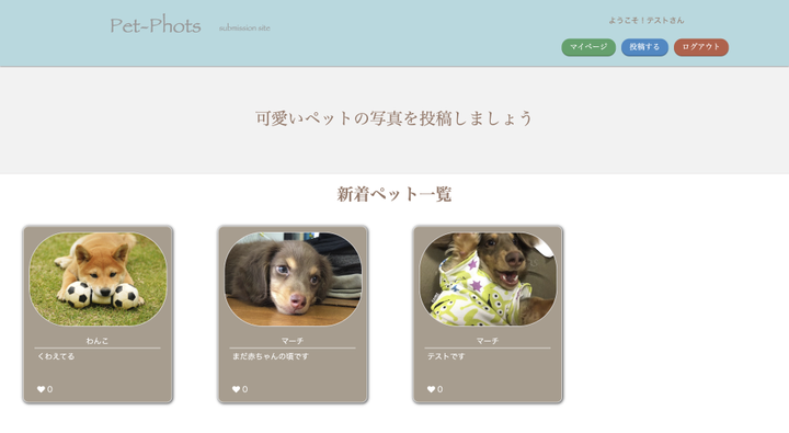 ペットの写真投稿アプリを作成しました。 画像投稿時にプレビュー機能を実装しております。 コメント機能やいいね機能を導入し、 ユーザー同士のコミュニケーションを楽しめるwebアプリを作成しました。
