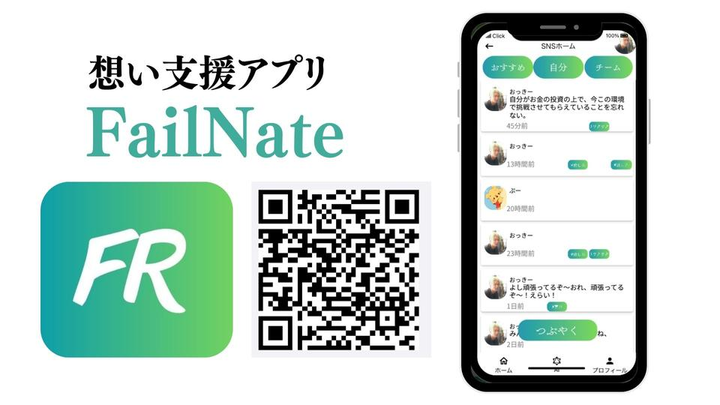 想い支援アプリ「FailNate」 あなたの想いが、あなたを支える。 FailNateは、日々のつぶやきを通して“自分の本音”を見える化し、 AI×心理学的アプローチでウェルビーイングを支援するアプリです。 ✔ つぶやく:小さな感情や気づきを記録 ✔ 見える:AIが想いを分析し、自分らしさを可視化 ✔ 変わる:可視化された「らしさ」から、自分だけのコーチングへ ひとりひとりが**「自分で自分を支える力」を育めるように。 メンタルに波がある時こそ、誰かの“いいね”ではなく「自分の想い」**とつながれる設計にしています。 現在プロトタイプを開発・運用中。 本音に寄り添う社会を目指して、仲間と共に日々アップデートを重ねています。