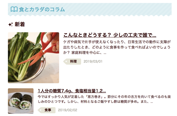 担当:企画・進行管理・編集・取材・執筆 病気を抱えていたり、健康に配慮をしている方に向けた食事とヘルスケアの情報をお伝えするコラム記事。メンバーは編集部の3名。私がディレクターとして進行管理など全般を担当していました。