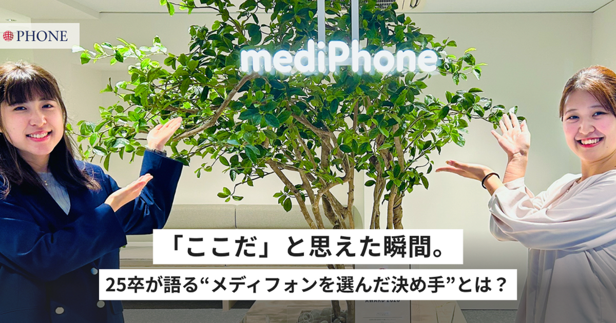 社会貢献度の高い事業内容はもちろん、代表取締役をはじめ、面接で関わったすべての方々が謙虚でいて魅力的で、、選考中から大和のキャリアに真面目に向き合ってくださいました。 メディフォンの魅力を社内外に発信していきたい!と心から感じて入社を決意いたしました。毎日試行錯誤しながら楽しく業務と向き合っています。メディフォンの魅力を皆様に発信していけるよう尽力して参ります!