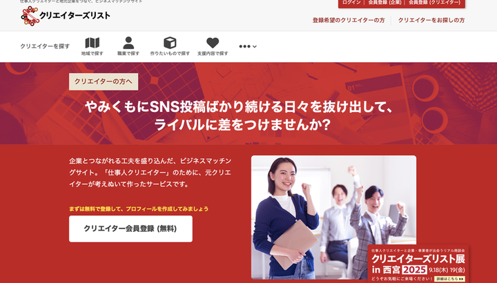 個人クリエイターと地元企業をつなぐマッチングサイトの開発。事業構築、お金の流れの整備から実装、プロモーションまでほぼ一人でやりました。会員数は在任中に150名程度まで増加しました 中身はWordPress製、会員制サイトを作るプラグインを改造して使っています
