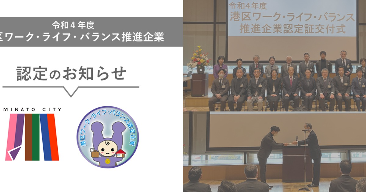 初エントリーで認定取得!令和4年度「港区ワーク・ライフ・バランス推進企業」に認定されました!!
