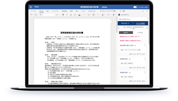 法務経営の時代を創る。 AI-CON Proは、自社専用のAI契約法務サービスです。 法務の知見を集約し、法務機能を経営・事業サイドに移管すると共に法務から競合優位性の確立を実現します。