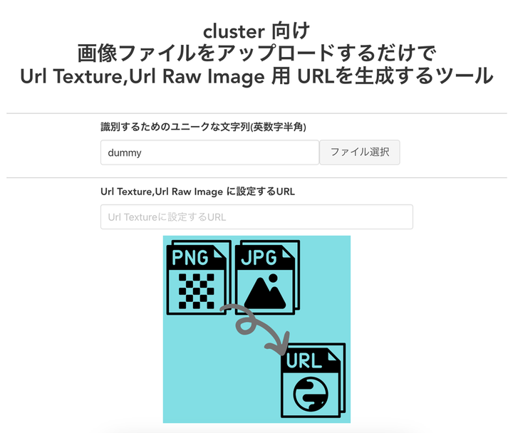 [cluster] 画像ファイルをアップロードするだけで Url Texture,Url Raw Image 用 URLを生成するツール
