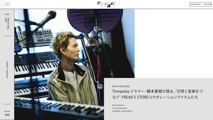 Tempalayのドラマー・藤本夏樹さんへのインタビュー記事、取材と執筆を担当。2025.8.19
