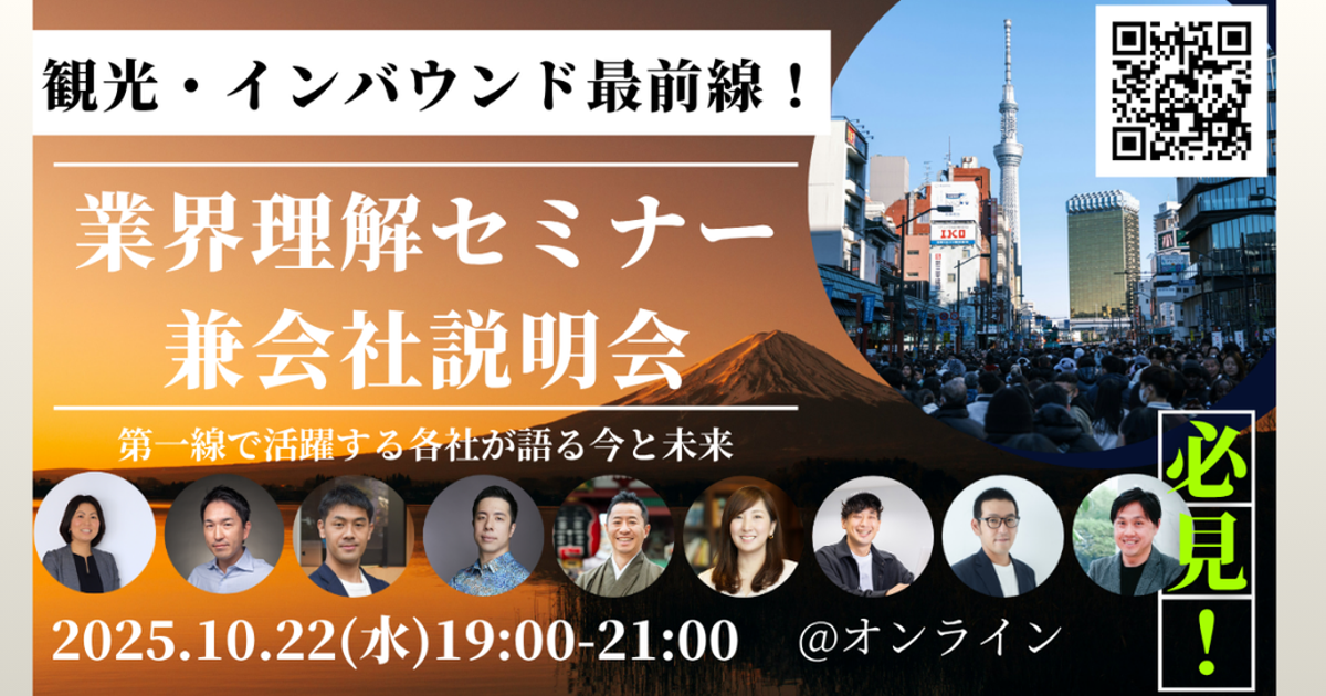 【観光・インバウンド業界 オンライン無料セミナー兼会社説明会のお知らせ】㈱羅針盤と第一線で活躍する企業、9社から業界の今と未来、求人情報など沢山聞けるチャンスです!