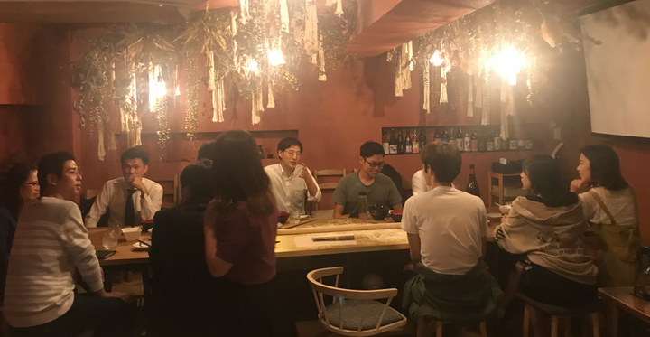 出張うどんの様子。これは月一回出張していた都内スナックの様子。1回10〜20名の集客がある。会社が休みの平日夜のみの営業だが、疲れた会社帰りでも千葉や埼玉など他県からも人が来てくれていた。 コロナウイルの影響でこのスナックは閉業した。