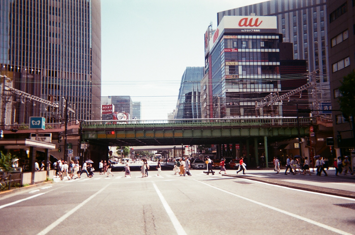 夏休みに訪れた炎天下の日比谷、行き交う人々を写ルンですで。