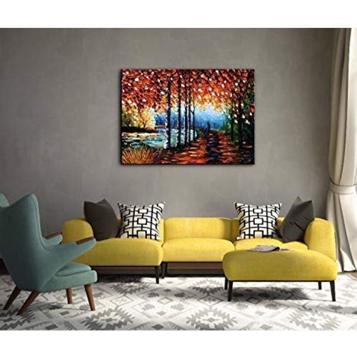 100% Hand Painted Contemporary Red Forest Scene Canvas Wall Art for Wall Decorations