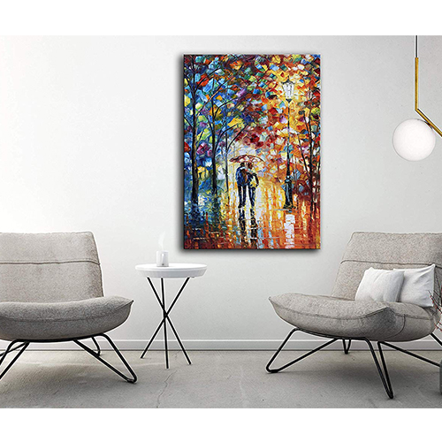Vertical Modern Hand painted Oil Paintings Colorful Rainy Scene Wall art Canvas for Living room