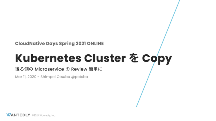 CloudNative Days Spring 2021 ONLINE にて Kubernetes を簡単にコピーする体験を届ける社内基盤について話しました。