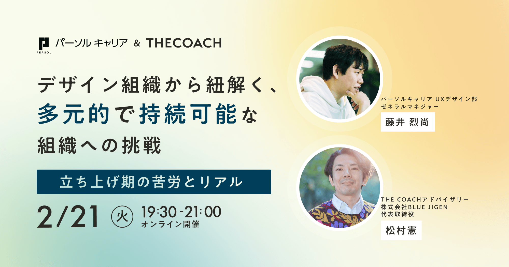 はたらく人々のエンパワーを目的としたデザイン組織を育てています。 ・LeSS Huge(大規模スクラム)体制における、Overall Design Lead ・クライアントプロダクトデザイン部の部長 兼 雑用係 ・120名のデザイン組織「NUTION」の組織開発(https://nution.persol-career.co.jp/)