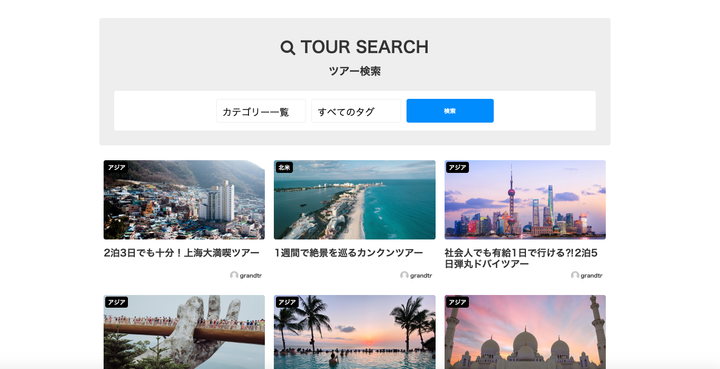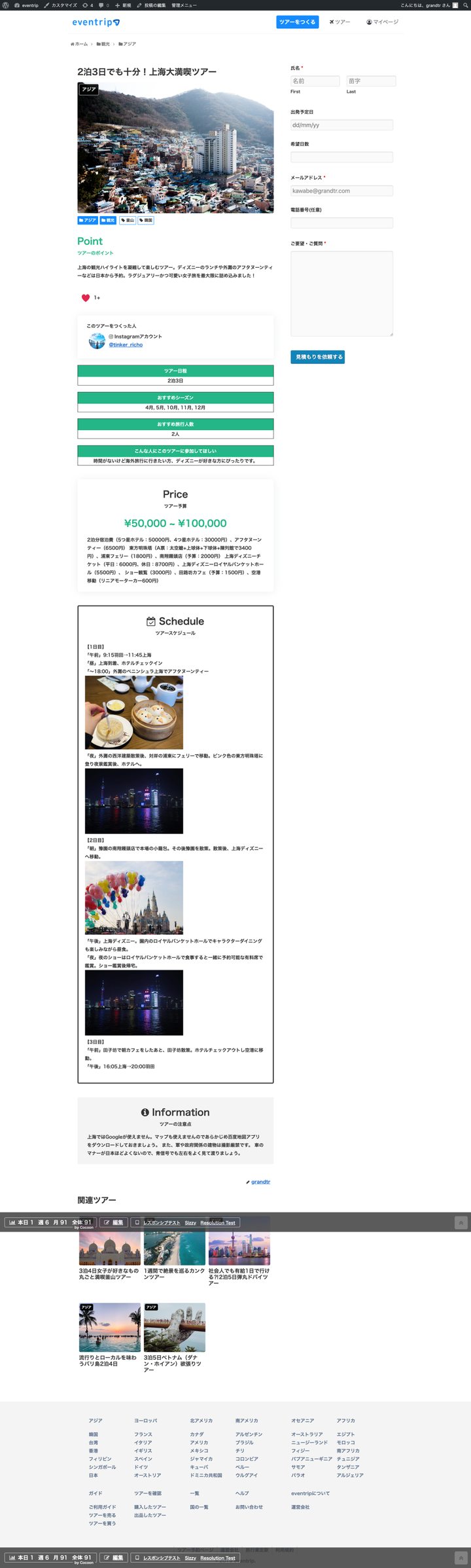 レスポンシブデザイン。 WordPress開発。 絞り込み機能 ツアー作成機能