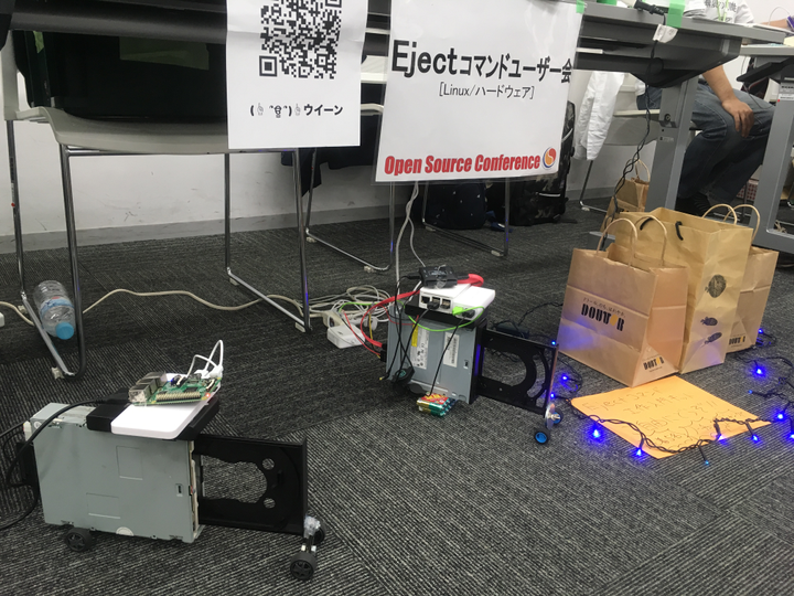 オープンソースコミュニティ「Ejectコマンドユーザ会( https://eject.kokuda.org/ )」にて、使わなくなった光学ドライブを活用した電子工作を行っています。 その中でもEject Carという作品は東京や名古屋のオープンソースカンファレンスで展示しており、多くの参加者から「面白い」「その発想はなかった」といった感想を頂いています。