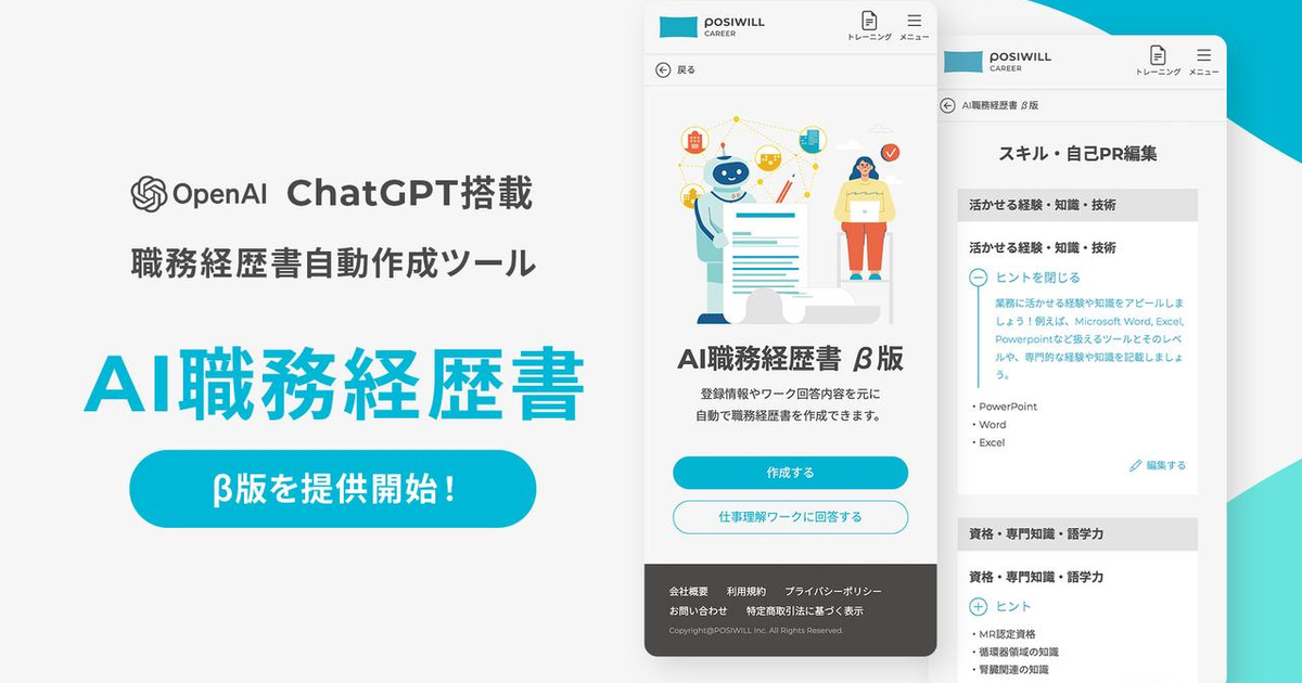 転職活動の強い味方に!職務経歴書が自動で作成できる「AI職務経歴書 β版」をリリース