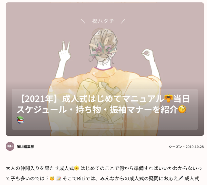 気になる成人式のあれこれを記事とinstagram投稿で簡単にわかりやすくまとめました! SEO検索順位:「成人式 持ち物」第3位 instagramいいね数:7125件 instagram保存数:1万4851件