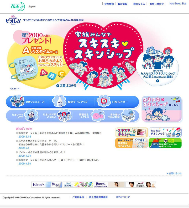 Web制作会社にて、ブランドサイトのデザインを制作しました。担当は主に花王のプロダクト。プリティア・ロリエF・ビオレuといったプロダクトページの、メインビジュアルとFlashによるアニメーションを制作しました。