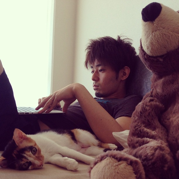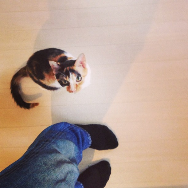 飼い猫。#三毛猫ミケランジェロ というハッシュタグを使ってたら関係ない猫が紛れ込んできたので #三宅ミケランジェロ に変えた。