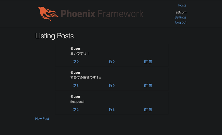 Elixirで作った模擬Twitter機能等付きアプリ