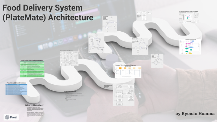 フードデリバリーアプリのアーキテクチャーをデザイン。 主に、以下から構成される4+1ダイアグラムに沿ったアーキテクチャーをデザイン。 I. ロジカルビュー:クラスダイアグラム II. ディベロプメントビュー:コンポーネントダイアグラム III. プロセスビュー:シーケンスダイアグラム、アクティビティダイアグラム IV. フィジカルビュー:デプロイメントダイアグラム V. シナリオ:ユースケースダイアグラム