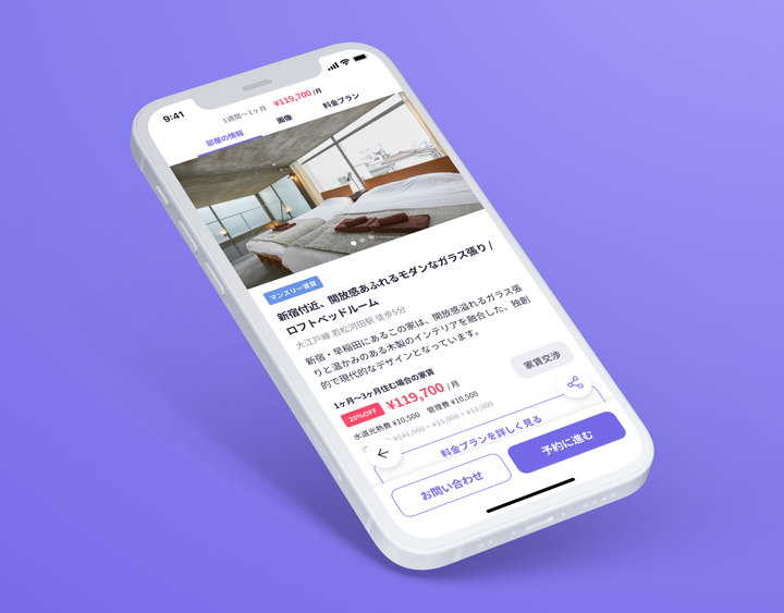 初期費用0円、最短1週間から家が借りられる賃貸アプリ「NOW ROOM」のUIデザインを担当しました。