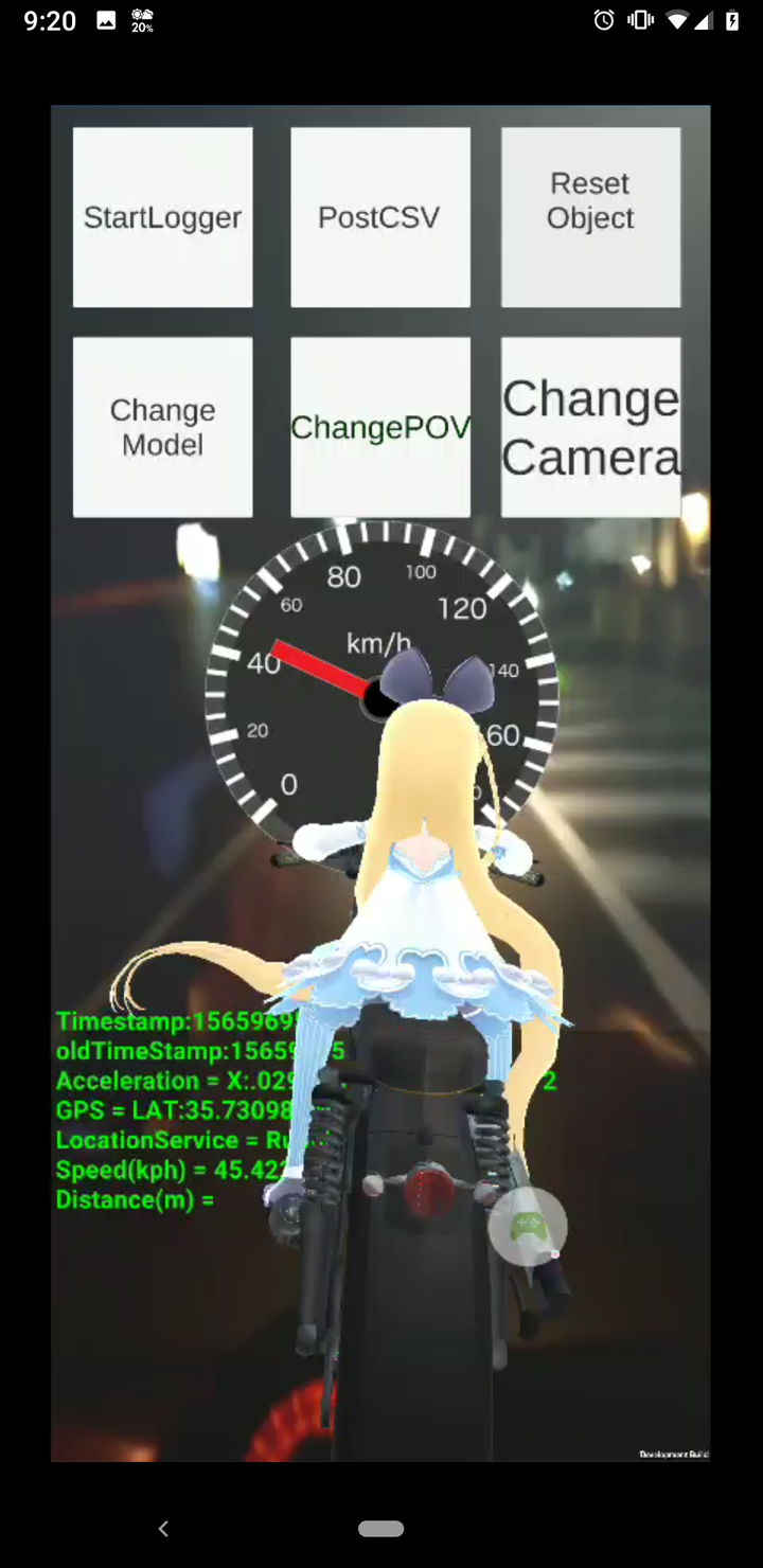 現在Unityで開発中の、モトブロガー向けのライブ配信システムです。 スマートフォン端末から取得したセンサーデータと、端末に接続したUVCカメラで、FPS視点の映像を撮影し、その映像とバイクとライダーの3Dモデルを重ねてライブ配信をできる仕組みを開発中です。 最近の進捗は、UVCカメラをAndroid端末に認識させ、そのカメラから撮影した映像を画面に表示することができました。