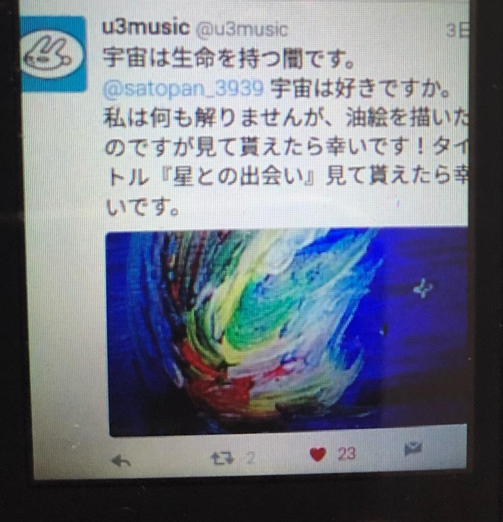 宇多田ヒカルさんのお父さんからTwitterにてコメントをいただいたとき、スクショいたしました画像です。