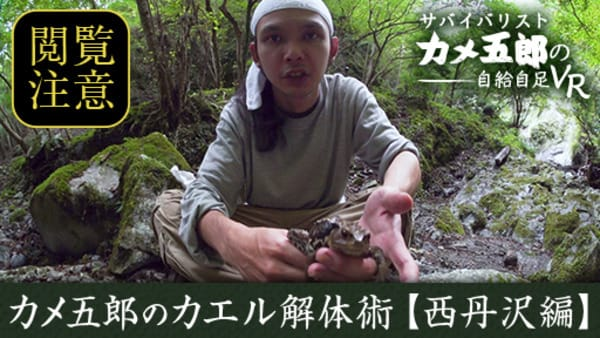 自らの野営体験や狩猟生活を撮影した動画が動画投稿サイトで一躍話題になったサバイバル愛好家であるカメ五郎のVR映像を制作 担当:プロデューサー・ディレクション・技術統括