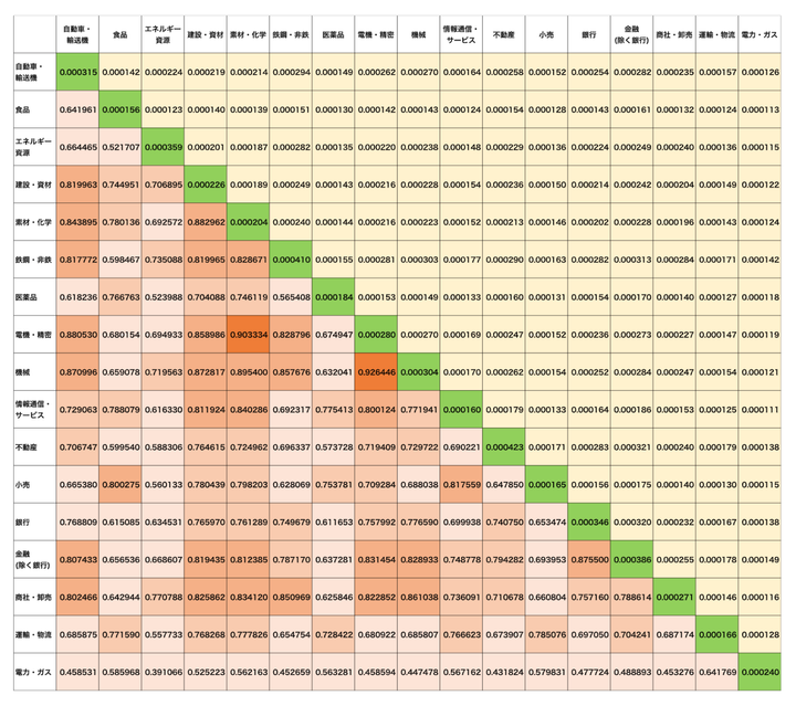 中下 咲帆早稲田大学 / 情報工学系業種別ETF相関分析TOPIX-17シリーズETFのデータを使用してExcelで分散共分散及び相関行列を作成し、その結果を分析してみましたgithub.com でさらに詳しく