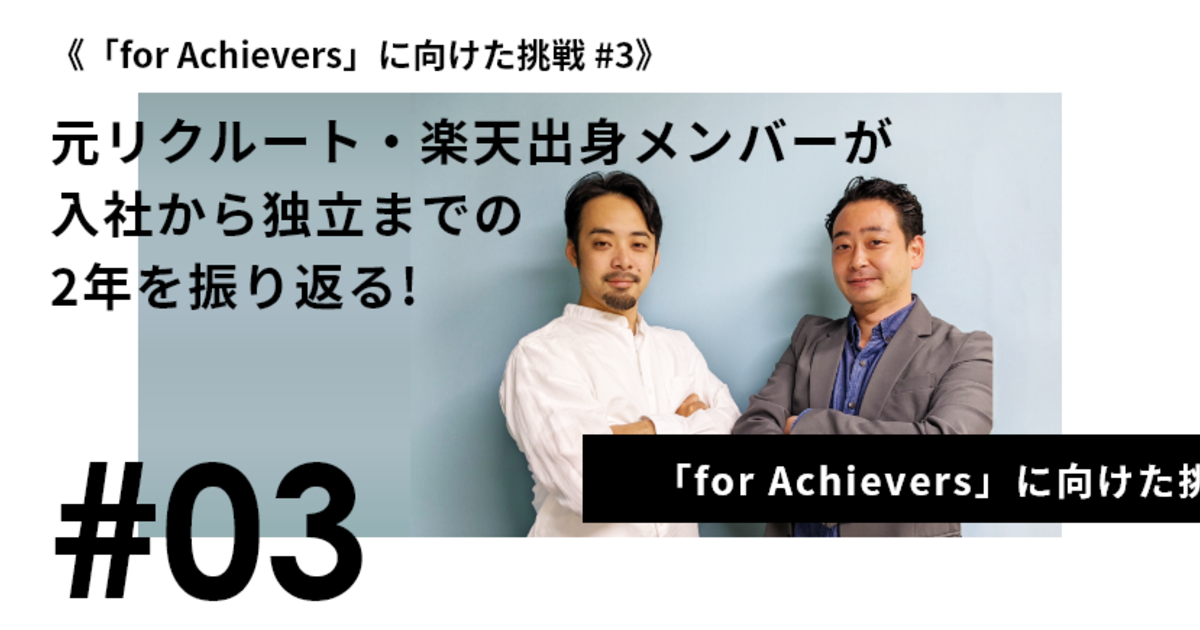 《「for Achievers」に向けた挑戦 #3》元リクルート・楽天出身メンバーがベンチャー企業転職から独立までの2年を振り返る。