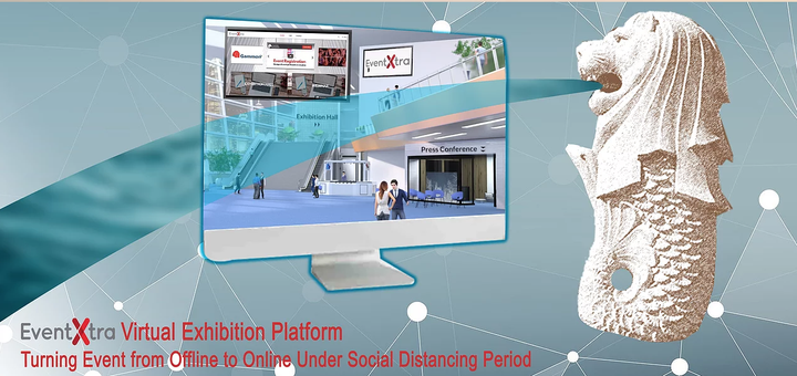This is a visual design for EventXtra's promotion of the virtual exhibition platform (the new product of the company). Since the exhibition is held in Singapore, I have added some Singaporean elements to this design. The iconic Merlion represents Singapore and the transparent effects in the water flow it sprays embody that the exhibition is held "virtually".