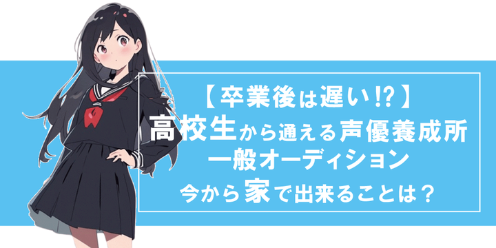 声優になりたい高校生のための記事を執筆しました。 高校卒業後から始めるのは遅いのか?在学中から通える声優養成所や声優学校はどこなのか?声優になる道筋は?今から始められる練習方法などを紹介しています。