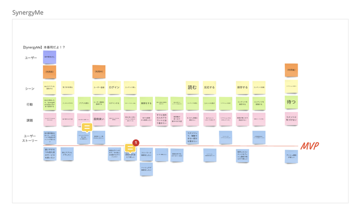■学んだこと ターゲットユーザーの選定 カスタマープロフィールの作成 バリューマップの作成 SWOT分析の実施 ユーザーインタビューの実施 カスタマージャーニーマップの作成 リーンキャンバスの作成 ビジネスモデルキャンバスの作成 ロードマップの作成 NSMの作成 ユーザーストーリーの作成 プロダクトバックログの作成 など