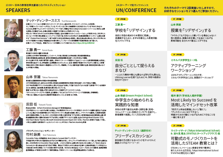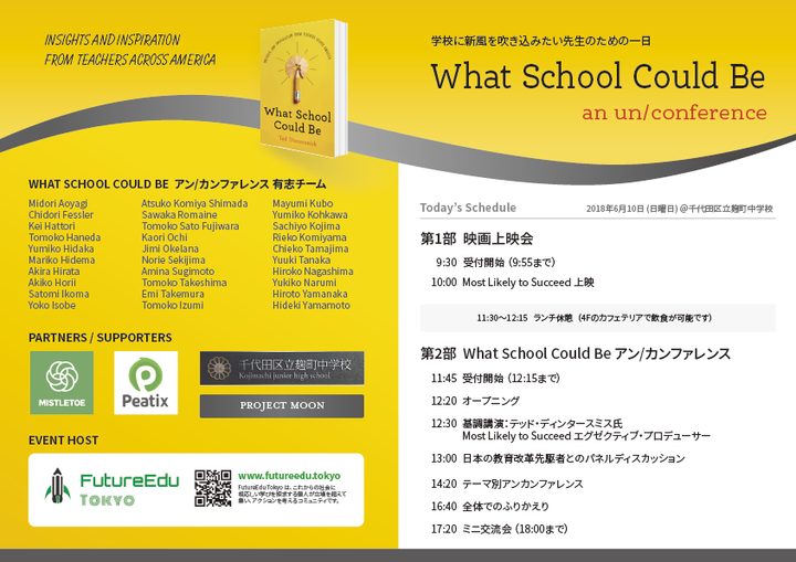 FutureEduの主催するWhat School Could Be Un/Conferenceのイベントパンフレット作成など。実際のイベントスタッフでもあります。