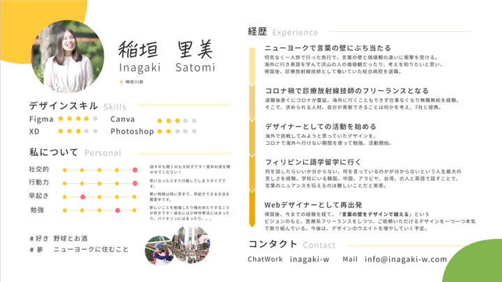 はじめまして。 デザイナー歴5年目の稲垣里美と申します。