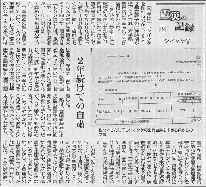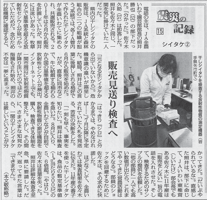 日本農業新聞 連載企画「震災の記録」シイタケ編