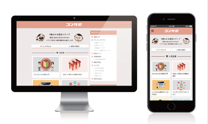 婚活事業を行っている知人からの依頼で制作した婚活メディアサイト。『コンサポ』というサイトです。 WordPressでサイトのwebデザイン、コーディングを担当しました。 コーディングでは主にHTMLとCSSを使用し、例えば記事内にあるタブ付きの表など、動きのあるものを作成する時にjQueryを使用しました。ページごとに違う表示がしたい場合などは、PHPを打っています。 クライアントである知人の理想やイメージを聞き、何度もすり合わせをしながら制作させていただきました。ユーザー目線に立ったサイトを心掛けました。