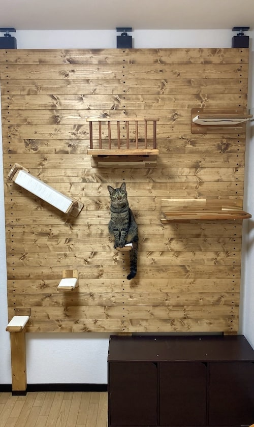 これらのキャットウォークに使っているステップを手作りで作り販売。 認知度が上がってきて、特にメルカリでよく売れるようになったが、現在販売を休止している。