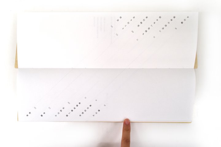 本の読み方をリデザインした、絵のない絵本の編集と装幀。 【背景】 タイポグラフィの授業で、文章のみの本を作る課題が出されて、判型、内容、ページ数一切制限なしです。 企画書と台割りから始め、線と色の濃淡調整、レイアウトや判型や紙の選び、装幀の仕方などを試行錯誤しながら、もっとも自分の意図に近い作品を仕上げました。 日本タイポグラフィ年鑑にも入選しました。 【理念】 本の読み方をリデザインした、絵のない絵本を作ってみました。 敢えて文字と大量の余白だけで物語りの季節の中で移ろいゆく景色を想像してもらいながら、繊細なラブストーリーを味わってもらいます。 例えば、線の関係によって、物語の内容をわかるような目次を加えました。また、両側の本文の距離は二人の主人公の関係を表しています。背景のグラデーションは昼から夜に変わったシーンです。日付しか書いてないページは主人公たちの生活を読者に考えてもらいたいからです。 最も重要なところは、この本を読む時、二人が向き合ってお互いの目線を交差することで、より深く交流でき、人と同じ本をシェアしている雰囲気感じさせたいと考えました。