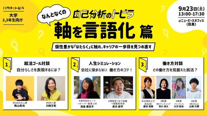 自己分析のトビラ 学生に対して自己分析を中心に新たな価値観や可能性を探ってもらうイベント