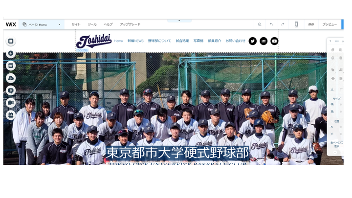 自身が所属する硬式野球部でHPを製作。ツールは無料HP作成サイトのWIXを使用。