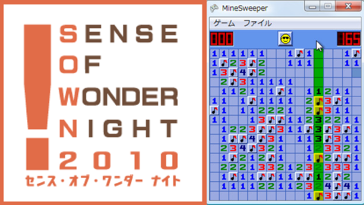 マインスイーパを遊ぶだけでオリジナルな音楽が動的に生成されていくゲームです。 Sense Of Wonder Night 2010の出展作品に選出されました。