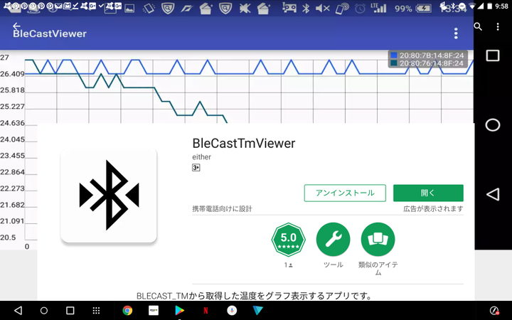 BLEビーコンで温度情報を発信するセンサの情報を、複数台同時に収集し表示するアプリです。