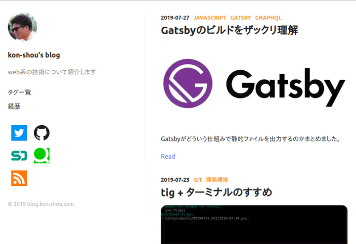 Gatsby製のブログ https://github.com/kon-shou/blog-gatsby