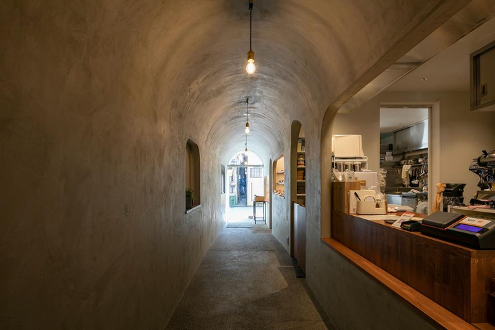 東京・江東区の飲食店「みらいのテーブル 門前仲町」。寺院の参道と公園に挟まれた敷地のパン店。両者を繋ぐ“裏道”の様な場を目指し、路地の様なスケール感の“トンネル”を備えた空間を考案。作業場を覗ける等の様々な仕掛けで大人に子供にも“ワクワク”を与えるベーカリーカフェ。基本設計〜実施設計に携わった。