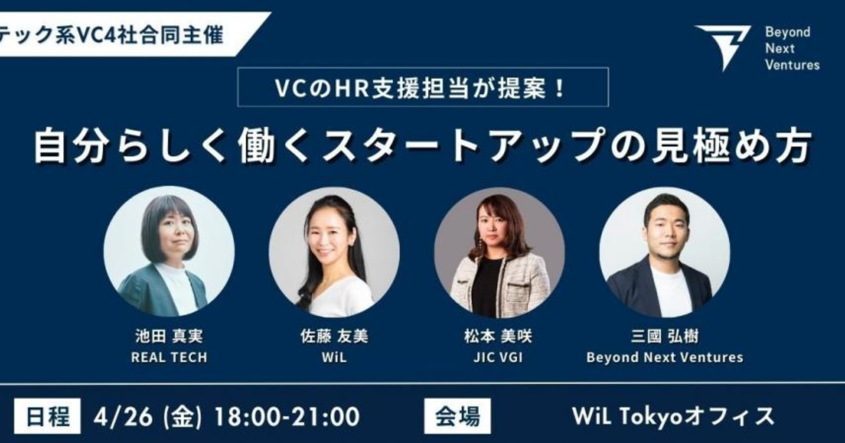 【イベント】VC4社合同キャリアトークイベント 4/26「VCのHR支援担当が提案!自分らしく働くスタートアップの見極め方」を開催!